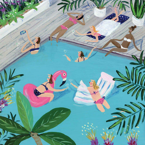 We have been looking for a funny, storytelling card range for a while and a few months ago we came across a lovely artist named Jenni Murphy. After seeing her wonderful, contemporary, hilarious artwork we contacted her to ask if she might be interested in collaborating with us. As you can imagine, we were really pleased when she said yes! Girls' Holiday, by Jenni Murphy, acrylic on panel Jenni was born in London as one of seven children. Her early years were spent enjoying the free things in this world. Camping trips in leaky tents, foraging for mushrooms in the woods,...