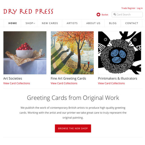 Last year we were contacted by Tom Homewood, an established artist, living and working locally to us in Sussex. Tom had been looking for a greeting card publisher to represent his work and mentioned this to the printer he uses. It so happens that we share the same printer! So the lovely people at One Digital, also local to us, recommended Dry Red Press as a publisher for Tom. After looking through his diverse collection of paintings we felt sure we could produce a very popular range of greeting cards. When choosing a new artist we try to make sure...